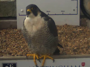 For over a decade I’ve been involved in a project to monitor and protect a peregrine nest and cameras have been key to ensuring that the nest remains undisturbed. The cameras were originally installed on Nottingham Trent University’s Newton Building solely for security reasons and whilst functional, the cameras were very basic. When the University decided to upgrade them to high definition cameras, they hatched a plan to broadcast the footage from the nest as an educational resource. As partners in protecting the nest Nottinghamshire Wildlife Trust were fully behind this move and saw real potential for the live feed to give people an opportunity to learn about the behaviour of the birds.